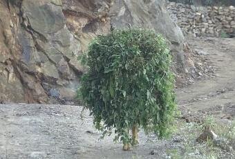 Nouvelle technique de camouflage à la mode en Inde, l’homme buisson. Presque invisible, seules les bottes trahissent la présence de notre espion