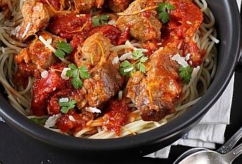 7- Servez ce plat avec des pâtes longues et un peu de parmesan en copeaux.
