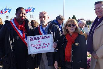 Aujourd’hui le travail de recherche des historiens a établi que la désignation des accusés releva le plus souvent souvent de l'arbitraire. De l’arbitraire pour réprimer les mouvements collectifs de désobéissance par la désignation de « meneurs ». De même, ce sont souvent moins les faits reprochés que des antécédents ou l'origine sociale qui conduisaient devant un peloton d'exécution. Tous les fusillés furent moins soumis à une procédure judiciaire que désignés comme instruments pour servir par l'exemple d'une répression impitoyable à la tenue en main des troupes. C’est cela que ce matin j’ai voulu porter face lors de notre cérémonie républicaine et cela ceint de mon écharpe tricolore en présentant un panneau où s’inscrivaient en lettres rouges ces mots lourds de sens : Réhabilitation pour les fusillés pour l’exemple.