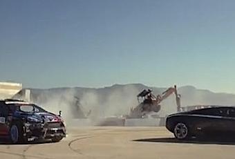 Le pilote de rallye Ken Block, plutôt que de briller sur les compétitions internationales du genre, a décidé de mettre ses exploits en scène dans des vidéos toujours plus pétaradantes, créant le buzz sur le net et se faisant payer à prix d’or ses apparitions au volant de sa super Ford Fiesta, capable d’accélérer de o à 100km/h en moins de 2 secondes. Nous vous avions déjà présenté quelques unes de ses performances qu’il nomme « Gymkhana » ici à San Francisco ou là à Hollywood . Pour cette fois, il promeut le jeu vidéo « Need for Speed: Rivals » en affrontant un effrayant parcours et de méchants adversaires armés de Lamborghini. Vroum vroum!