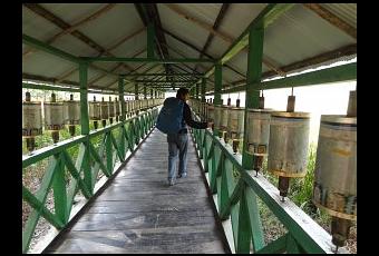 Bon, nous ne sommes pas fous non plus. Ca faisait beaucoup. N’oublions pas que nous sommes en montagne et malgré tout, ca monte et ca descend en permanence! Du coup, nous avons un peu triché. Après s’être mis d’accord avec le patron de l’hôtel Garuda à Pelling, nous lui avons confié nos sacs pour un départ en jeep direct vers Yuksom vers midi. Quant à nous, dès 8h, nous avons embarqué à bord d’une jeep privée en direction du lac Khecheopalri (prononcez « catch a perry »). 1h de route et de bringuebalage plus tard sur des routes défoncées, nous sommes arrivés au village qui borde le lac (entrée 10rps).