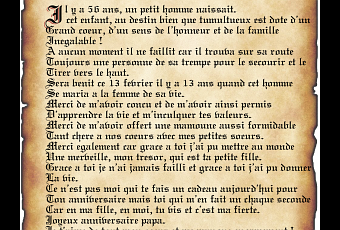 Ce n'ets pas moi qui te fais un cadeau aujourd'hui pour ton anniversaire mais toi qui m'en fait un chaque seconde. Car en ma fille, en moi, tu vis et c'est ma fierté.