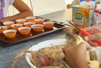En plus, pas question de regarder sans rien faire, ici, dans les Vosges, à La Bresse, on chausse son tablier, on s’arme de son couteau, et on épluche, on évide, on rissole, on pare, on mixe et surtout…on déguste à la fin !!! J’adore ( et je vous en ai déjà parlé) !