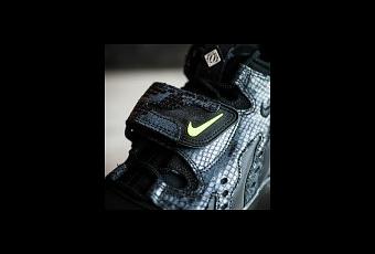 La Nike Air DT Max ’96 est de retour dans un tout nouveau coloris inédit surnommé « Snake Glow ». Les sneakers sont conçues à partir de matériaux premium, avec un upper en cuir noir et snakeskin gris bleuté contrastés par des accents de vert volt.