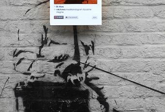 Sur Instagram, les gens postent chaque minute de leur vie en photo, du lever au coucher, du café, au déjeuner, réunion avec les collègues, voyages, cup cakes sortant du four, etc. Un street artiste s’est piqué au jeu… mais dans le sens inverse : Instagram dans la vraie vie.