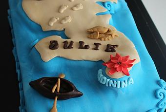 Voici un gâteau sur le thème de la martinique avec la forme de la carte.. Il s'agit d'un gâteau sculpté au chocolat (mud cake) et d'une ganache kinder...