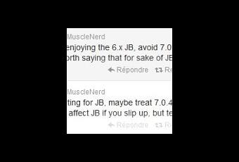 Dans un second tweet, MuscleNerd déconseille évidemment fortement aux possesseurs d’iDevices jailbreakés sous iOS 6 de passer à iOS 7, puisqu’en dehors du fait que l’OS ne soit pas « déplombable », il est impossible de revenir en arrière… On vous aura prévenus !