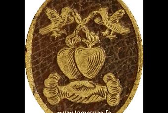Photographies : Plat de reliure et page de titre avec son frontispice de Les Amusements de Paris, Almanach chantant pour les jolies Femmes qui ont de la raison du XVIIIe siècle. Le frontispice est intitulé « L'Apothéose ». Un portrait de femme est placé sur un autel par Amour et les trois Grâces (les Charites représentant l'Harmonie) et est ceint d'une grande couronne de fleurs, tout cela dans un décors de nues avec derrière un soleil resplendissant. Sur le sol sont posés des symboles des arts, des lettres et des sciences.