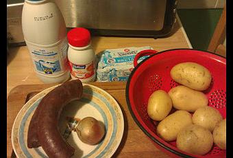 - enfin garnir un moule à gratin d'une couche de purée, de la couche de boudin et terminer par une 2ème couche de purée, passez au four quelques minutes parsemé soit d'un peu de chapelure ou d'emmental râpé
