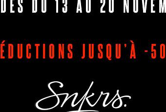Jusqu’au mercredi 20 novembre 2013, ce sont les soldes sur SNKRS, profitez de remises allant jusqu’à -50% sur de nombreux produits: sneakers, t-shirts, vestes, casquettes…