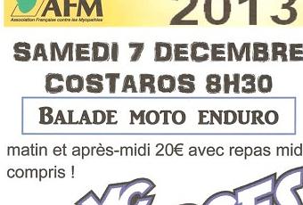 Le Moto Club des Barges organise une balade moto le samedi 7 décembre pour le Téléthon 2013, rendez vous à 8h30 à Costaros.