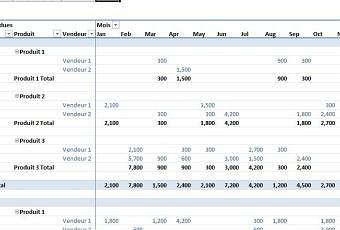 À la base, la fonction Liredonneestabcroidynamique (ou Getpivotdata en anglais) est plutôt rigide. Dans l’exemple ci-bas, vous trouverez un tableau croisé dynamique qui présente des quantités vendues, classées d’abord par pays, ensuite par produit et finalement par vendeur, pour chacun des mois de l’année en cours. Si vous placez votre curseur dans la cellule E5 et que vous souhaitez vous lier à la quantité d’unités vendues en Angleterre, du produit 2, par le vendeur 1, en janvier, vous n’aurez qu’à sélectionner la cellule E17. Lorsque vous cliquerez sur ENTER, vous verrez la fonction suivante apparaître : =LIREDONNEESTABCROIDYNAMIQUE("Quantité",$B$8,"Vendeur","Vendeur 1","Pays","Angleterre","Produit","Produit 2","Mois","Jan"). Si vous copiez ensuite la formule dans une autre cellule, le résultat restera toujours le même puisque la formule n’est pas dynamique. Elle est attachée à des paramètres fixes bien précis, qui sont nommés dans la formule: