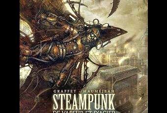 Steampunk est un bel ouvrage qui nous en mets plein les mirettes : les illustrations de Didier Graffet sont superbes ! J'adore le travail de cet illustrateur, et tout particulièrement ses couvertures de livres (on en trouve chez Bragelonne pour des romans de Fantasy comme ceux de David Gemmell, mais aussi chez Mnémos ou l'Atalante, et beaucoup d'autres !). Certaines illustrations dans cet album m'ont vraiment scotchées et m'ont instantanément fait voyager dans l'univers imaginé par Didier Graffet.