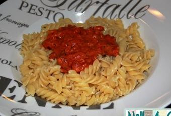 Faire revenir les lardons aves le beurre et l'huile. Ajouter le concentré et la vodka, bien mélanger et laisser cuire à feu doux 5 minutes. Ajouter la crème et le persil. 2 minutes, et c'est prêt!