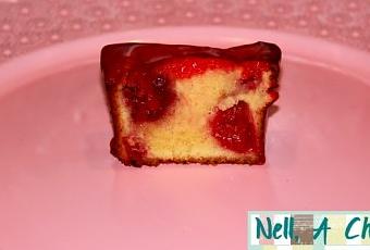 Gâteau au chocolat blanc avec framboises, nappé de ganache chocolat blanc aromatisée à la framboise