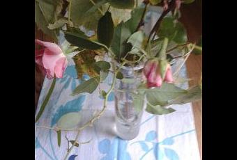 un bouquet avec les dernières roses du jardin et quelques feuilles de vigne