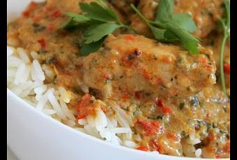 Une recette aux saveurs asiatique qui met du peps a nos papilles!A base de poulet, de piment rouge pour agrémenter et de lait de coco pour adoucir le goût, le tout accompagné d'un riz basmati, ce plat est une explosion de saveurs.... je vous laisse découvrirla recette.