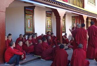 Un groupe de moines en plein débat au monastère de Rumtek, peut être cherchent ils à se mettre d’accord sur qui est le 17ème Karmapa !