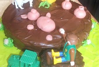et là c'est un gâteau avec des cochons se "baignant" dans la marre !!!