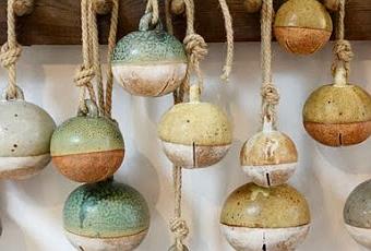 Sur le site Mquan, on trouve beaucoup d'autres créations, pas seulement des cloches,mais des guirlandes, des objets d'iconographie, des yeux, des crânes, des coquillages ...Tout est fait à la main par Michele Quan, dans son studio à Brooklyn . Elle mélange différents matériaux, du bois, de la fonte, du laiton et c'est ce qui m'intéresse dansle travail avec la céramique, pouvoir harmoniser la terre à un autre élément
