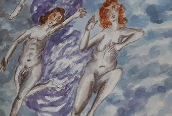 Dans le ciel un peu mauve Comme en fuite ils se sauvent. Apeurés par ce curieux animal En-dessous d'eux, un peu bancal? Un oiseau semblerait-il de malheur, A mauvaise augure qui leur fait peur, Alors que le vaste espace céleste Est vide de toute alarme funeste, Les voilà à fuir comme menacés, L'épée tirée pour se protéger, Terrifiés par cette coquecigrue bigarrée! Pauvres êtres toujours inquiets De ce monde et de ses étrangetés. Quand l'inconnu les affole, Les voilà qu'ils s'envolent, Fébriles comme des étourneaux, Ils ne connaissent jamais de repos.