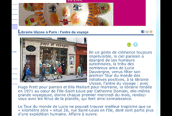 Pour écouter son reportage, c'est ici que ça se passe. Ça donne envie de partir, n'est-ce pas ?Encore merci à la SERE pour l'organisation de l'événement, à Catherine et Dominique Domain de la librairie Ulysse, pour l'accueil et toutes ces belles rencontres, ainsi qu'à tous les présents : amis, voyageurs, journalistes et curieuxSi vous ne connaissez pas l'endroit, je vous invite à y faire escale un de ces prochains "premiers mercredis du mois" à partir de 18h30. Vous m'en direz des nouvelles...