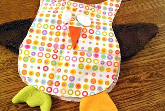 Troisième étape: on réalise les membres de l'animal grâce à la technique des coutures invisibles. Pour cela rien de plus simple :- mettez les morceaux correspondants l'un sur l'autre, endroit contre endroit- cousez le pourtour en prenant soin de laisser quelques centimètres non cousus pour pouvoir retourner le tout- crantez (c'est à dire faites une incision en forme de ^ ) au niveau des angles et arrondis. De cette façon le tissus se mettra bien, jusqu'au bout des griffes de la chouette ! - retournez : c'est gagné !Répétez l'opération pour les 2 ailes et les 2 pattes. Voyez ce que cela donne, cela commence à donner envie, non ? Allez envoyez-moi un message, vous serez peut-être l'heureux gagnant !