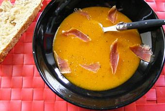 Pendant la démonstration, nous avons réalisé un velouté de potimarron express qui m'a bien convaincue, et ayant un reste du légume à terminer dans mon frigo, j'ai décidé de me lancer dans le velouté en essayant de reproduire la recette, que voici :