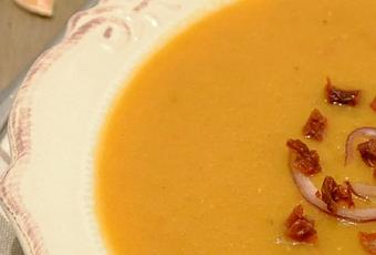 Égouttez les lentilles et le potimarron (gardez le jus de cuisson du potimarron).