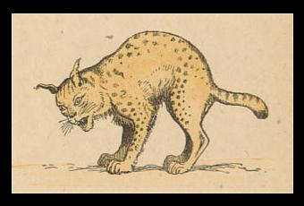 Le lynx a les yeux brillants, le regard doux, l’air agréable et gai. Il est communément de la grandeur d’un renard, il marche et saute comme le chat ; il vit de chasse et poursuit son gibier jusqu’à la cime des arbres; les chats sauvages, les martres, les écureuils ne peuvent lui échapper ; il saisit aussi les oiseaux; il atteint les cerfs, les chevreuils, les lièvres au passage et s’élance dessus ; il les prend à la gorge, et lorsqu’il s’est rendu maître de sa victime, il en suce le sang et lui ouvre la tête pour manger la cervelle, après quoi souvent, il l’abandonne pour en chercher une autre: rarement il retourne à la première proie.