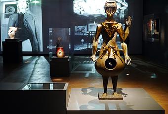 À travers plus de 200 œuvres mutantes, dont nombre de chefs-d’œuvre de Dali, Calder, Bellmer, Man Ray, Miró, Giacometti ou Magritte, le visiteur découvre tout le génie et l’inventivité des Surréalistes. La superbe scénographie de l’exposition leur rend d’ailleurs bien hommage : une allée centrale bordée d’œuvres contemporaines distribue de chaque côté des salles thématiques consacrées aux grands maîtres. Au sol, des noms de rues imaginaires, inventées jadis par Breton et les autres : «rue faible», «rue aux lèvres», «rue de tous les diables»... Cinq expositions surréalistes datant de 1933, 1936, 1938, 1957 à 1959 sont aussi reconstituées, quasi telles quelles. S’y rencontrent joyeusement œuvres d’art, objets tribaux, objets du quotidien ou taxidermies : un grand cabinet de curiosités en sorte, admirablement orchestré par le commissaire d’exposition Didier Ottinger. L’ensemble est frais et réjouissant. A voir (et revoir) impérativement.