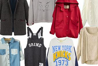 manteau boyfriend / sweat chat / manteau rouge/ pull blanc / pull beige/ sweat NY/ robe polkadot GRIND 56/ Chemise en jean