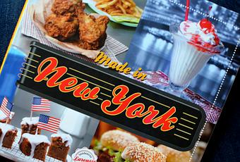 La cuisine new-yorkaise est née d’influences très diverses : anglaises, irlandaises, italiennes, allemandes, mais aussi chinoises… Un véritable melting-pot! Ce que ce livre illustre très bien. En plus de présenter une trentaine de recettes typiques de la Grosse Pomme (il y en a pour tous les goûts: cocktails, fast-food, brunch, ethnic food…) le livre regorge de photos de la ville et de jolis graphismes… J’aime beaucoup! [notamment les salades waldorf et caesar, les oeufs benedict, "le" cheesecake,....]