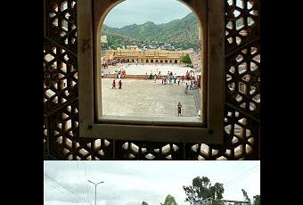 Voilà ce que voyaient les femmes prisonnières du harem du palais de Amer. Cachées derrière la dentelle de pierre, elles ne pouvaient apercevoir que de loin l’effervescence de la cour.La vie y devenait tableau, mise à distance, théorique et fictive. Deux mondes parallèles que des escaliers rejoignaient.Aujourd’hui, Amer a dû abandonner ses prérogatives, et n’est plus qu’un musée que l’on visite. Aujourd’hui, tout un chacun peut passer de l’un à l’autre impunément. Nul besoin de se draper en femme pour y déambuler, ni d’être un prince.Au loin, à une dizaine de kilomètres, bruisse la ville de Jaipur. Mais ici, rien de tel. Juste le calme, le passé perdu, et la rêverie…Je suis resté de longues minutes à observer ces vaches qui dorment paisiblement sur la route.Rien n’arrive à perturber leur immobilité. Elles se savent sacrées, et en profitent. Les vélos, les mobylettes ou les voitures doivent les éviter.Mais tout à coup, arrive un camion qui fonce droit sur elles.Alors, placidement, comme à regret, elles déplacent pour lui offrir un passage.Est-ce un camion sacré ? Ou alors, lors de longues veillées nocturnes, les vaches se sont-elles racontées des histoires de camion fou, venant percuter leurs congénères ?...