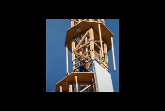 C’est en s’intéressant à la question que la société allemande Timber Tower a imaginé une éolienne dont le mat serait en bois, plus exactement en épicéa lamellé collé afin de limiter le recours à l’acier ou au béton. D’après ses concepteurs, un mat de 90 mètres permettrait d’économiser 300 tonnes d’acier et même de faire office de stockage pour environ 400 tonnes de CO2, accumulé dans le bois lors de la croissance des arbres, gaz qui resterait emprisonné dans le matériau jusqu’à sa destruction.