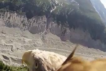 Extraite d’un documentaire, cette séquence montre un aigle équipée d’une caméra sur le dos survolant la Mer de Glace dans le massif du Mont Blanc. Un vol extraordinaire vraiment impressionnant.