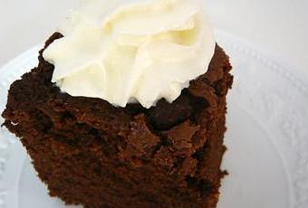 Ingrédients : 175 g de chocolat noir (62% au moins) haché ; 115g de beurre ; 30g de cacao en poudre ; 250 g de farine ; 1/2c. à café de sel ; 4 oeufs ; 400g de sucre (!!!! vouiiii, ça fait un max quand même); graines de 1 gousse de vanille ; 75g de crème fraîche épaisse (achevez-moi !) ; 75g de chocolat noir (72% au moins) détaillé en pépites.