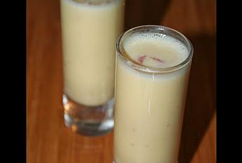 5. Servir dans des shots ou petits verres et ciseler du bacon frais sur le dessus.