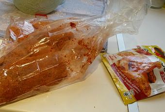 J'ai testé pour la première fois cette recette de morceaux de poulet cuits dans un sachet tout prêt (paprika et tomates). J'avais en mémoire la publicité maintes fois ressassée. Sans y croire trop. Mais je dois dire que le résultat n'est pas trop décevant. La viande est en effet tendre et juteuse.