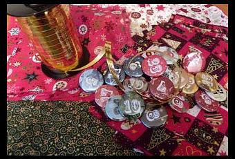 Cette année j'opte pour un "pochon" en tissus fermé par un ruban joyeuses fêtes et un badge pour le numéro.