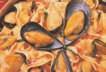 Cuites à la tomate, les moules constituent une sorte de ragoût parfumé à l’ail et au basilic qui agrémente parfaitement un plat de pâtes fraîches.