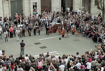 A 06h00 du soir sur la place Sant Roc de la ville de Sabadell, une petite fille va être largement récompensée de la pièce qu’elle vient de donner à un contrebassiste immobile.