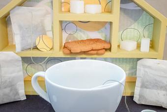 Vous pouvez aussi emballer les sucres dans le même papier et faire des dessous de tasse ronds en papier pour poser les tasses. Et après utilisation tout part à la poubelle !