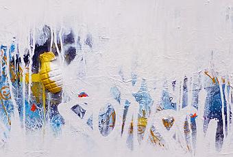 Oeuvre originale sur toile de format 50x65 cm. Technique mixte incluant aérosols, marqueurs, collages, papiers de soie, sculpture en plâtre et marqueurs. Signé Pow dans la composition ainsi qu'au dos feat. JP Malot. Paris octobre 2013. Info et disponibilité à [email protected] ou [email protected]