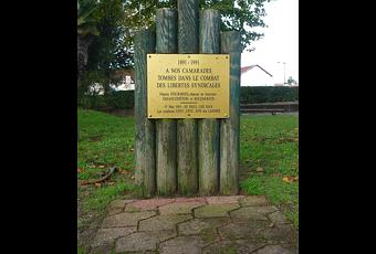 A proximité des églises se trouvent souvent d’autres monuments religieux, des cimetières, des monuments aux morts. La présence d’un monument commémorant les luttes syndicales, c’est plus rare.