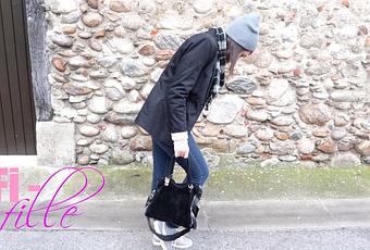 J’arrête de m’apitoyer sur mon sort car on sait tous que cela n’arrange rien. Alors aujourd’hui je voulais porter un truc décontract, pour paraître « cool » mouarf ! Donc j’ai opté pour les baskets Nike, avec mon jean fétiche (que j’ai retrouvé il y a pas longtemps !) un pull rose pour rappeler les lacets roses que j’ai mis sur les Nike, un blazer noir parce-que j’avais envie (parce-que devant mon armoire à moitié remplie je me suis dit « j’ai rien à me mettre », rien ne va ensemble, tout est moche) S.O.S ! N’importe quoi en y repensant, non mais franchement ! Bon et ensuite le bonnet gris pour rappeler le gris des Nike, et ensuite le sac noir pour rappeler le blazer noir ! Le côté noir de ce look veut dire « énervée » le côté gris ne veut rien dire mais le rose veut tout dire : « je suis énervée, mais je reste gentille et polie, car je suis une fille ».