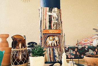 - Décorez votre sac: j’ai commencé par un collier cousu sur le haut du sac, puis j’ai appliqué une pochette très indie que j’avais rapporté de mon voyage en Égypte! Elle servira à glisser kleenex, clefs de casier, cartes etc…