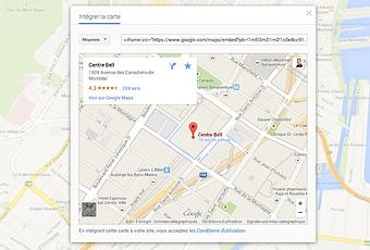 - La carte ainsi que le code d’insertion apparaîtront à l’écran.