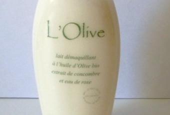 Ce lait est "à base d’huile d’olive bio hydratante et enrichi en extrait de concombre et en eau de rose pour leurs propriétés astringentes, purifiantes et adoucissantes."