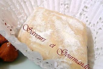 INGRÉDIENTS :P/ environ 20 biscuits (+ ou – selon la taille du biscuit) :120 gr de sucre glace120 gr de beurre à température ambiante250 gr de farine½ cuillère à café de levure120 gr de noisettes1 œuf1 cuillère à café de vanille liquideDécoration : Du sucre glace.